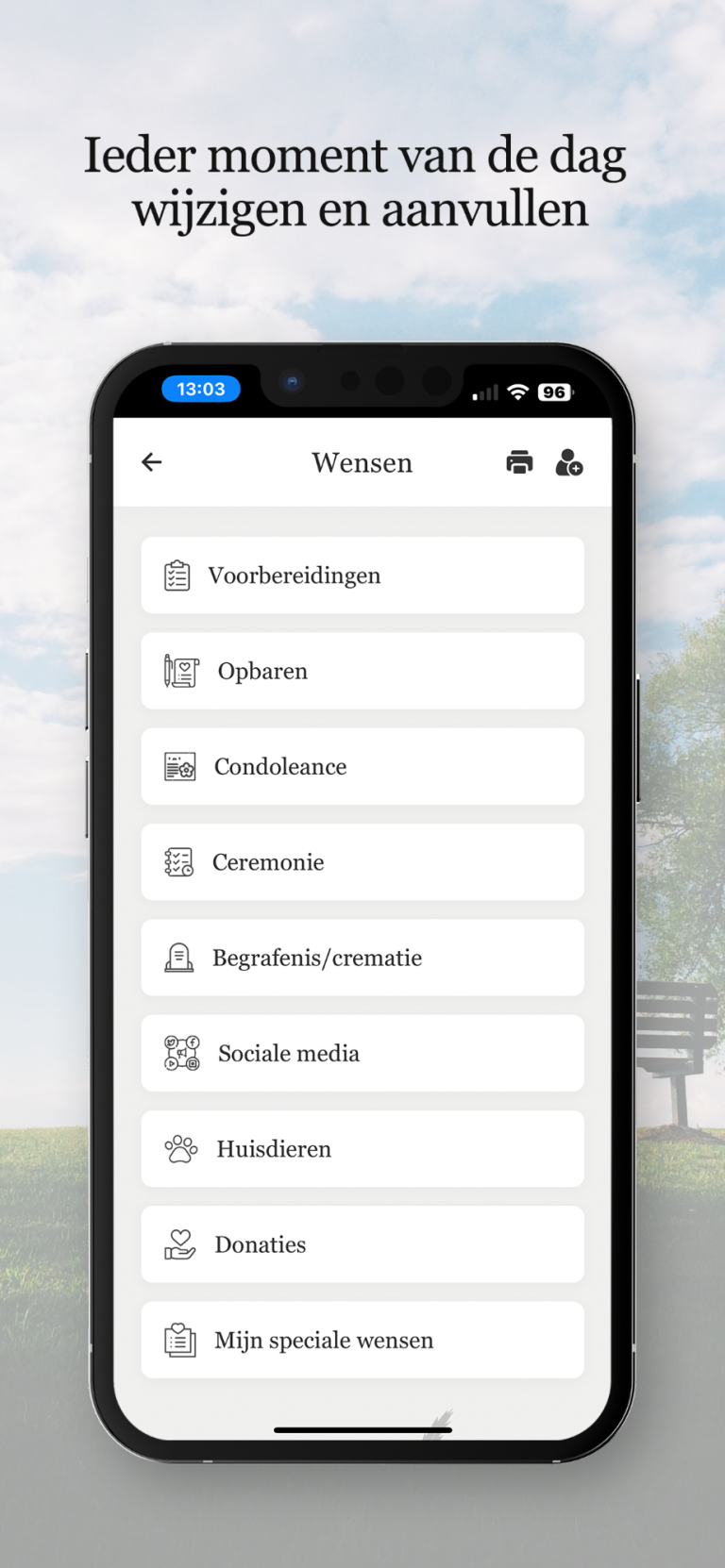 Je kunt je wensen op ieder moment wijzigen. Zo blijft alles kloppen met wie jij bent en waar je staat.